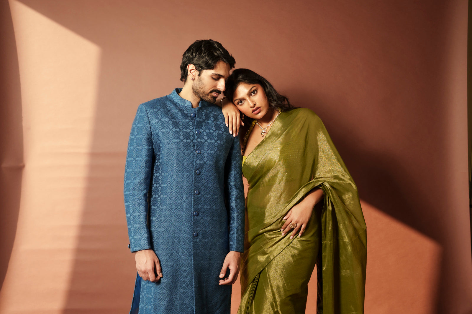 schedule a virtual appointment. To help you find the right fit, sherwanis and blouses include a two-inch margin for minor alterations, while pants have a half-inch margin. If you need