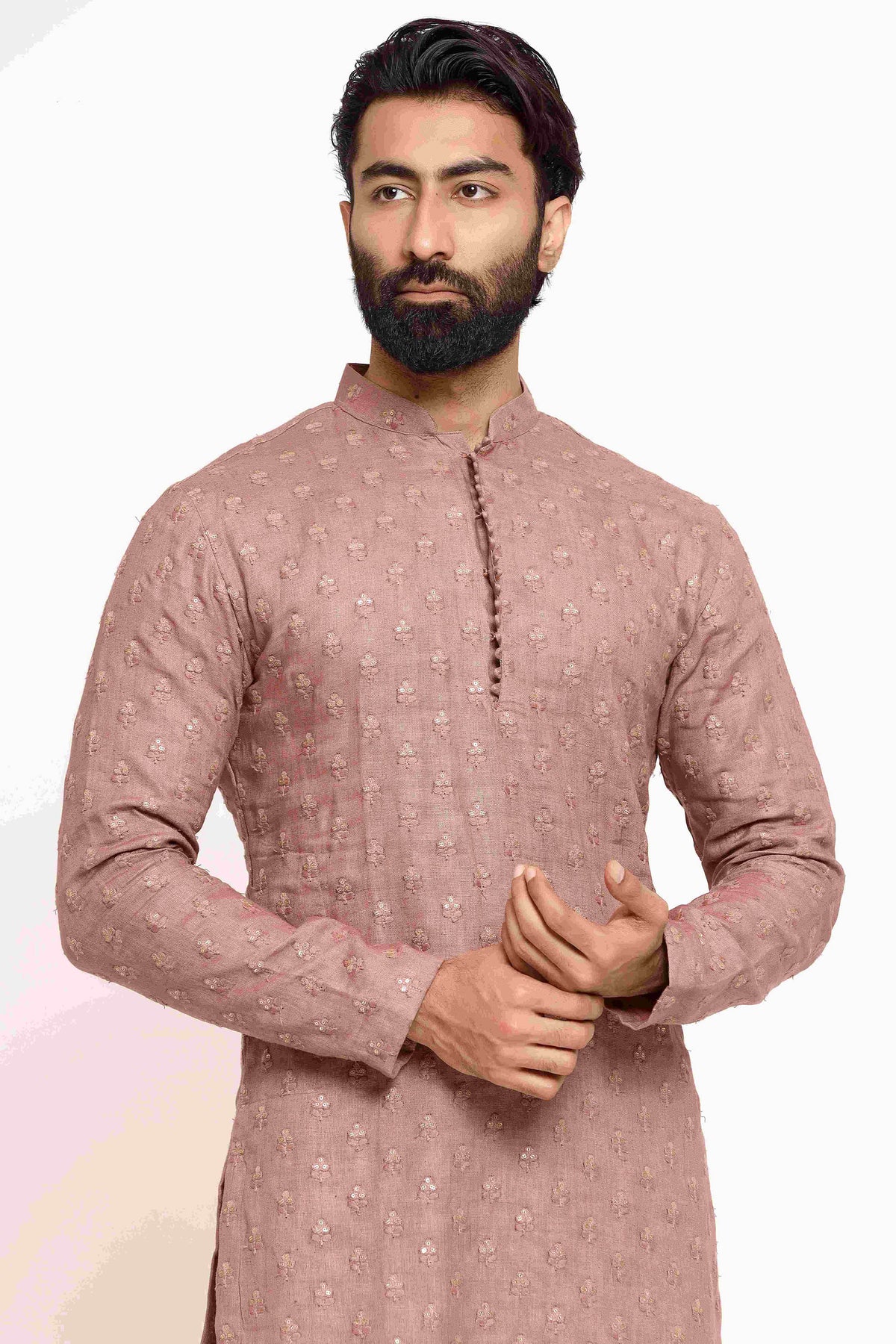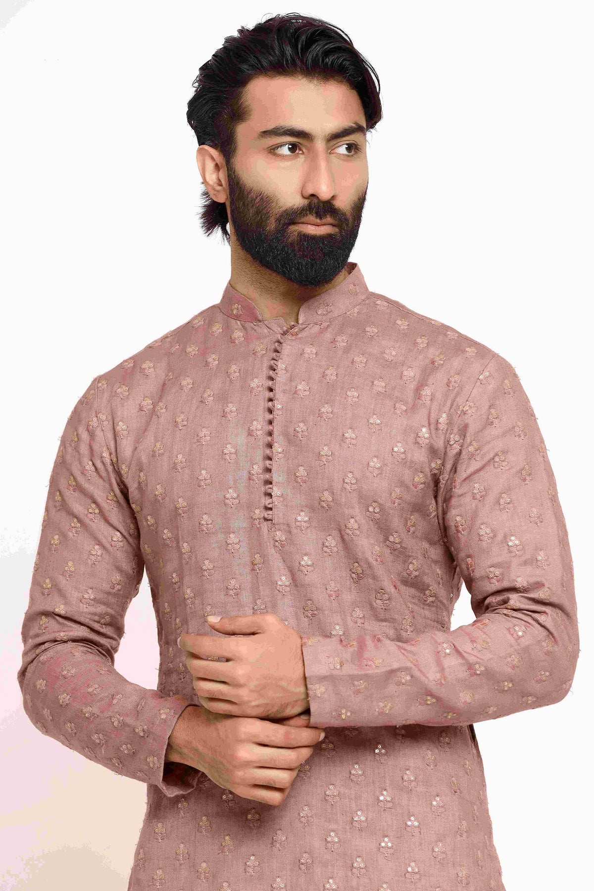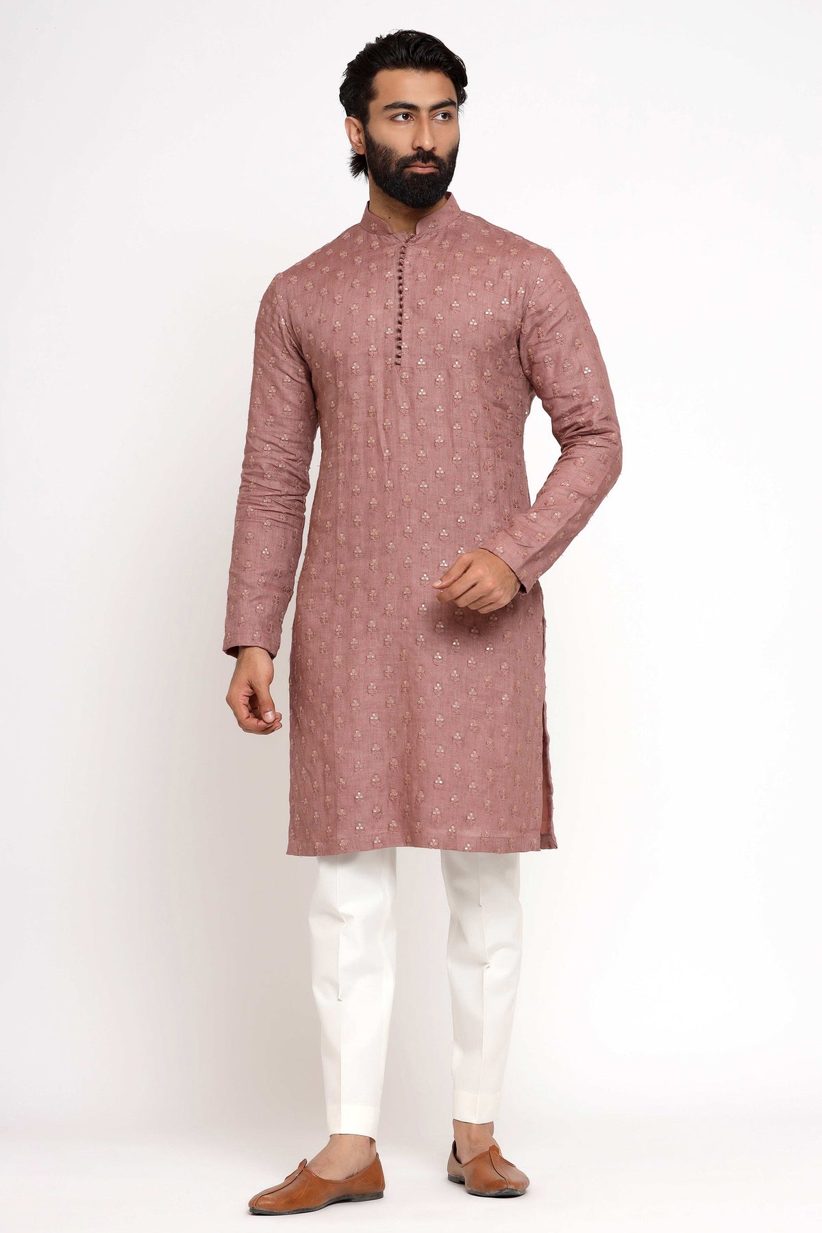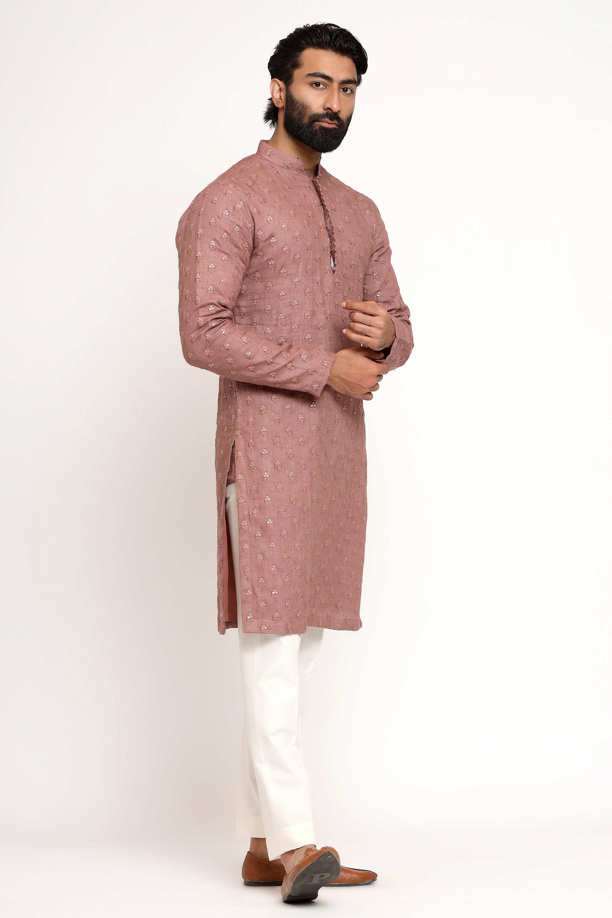 Kurta: Self embroidered linen