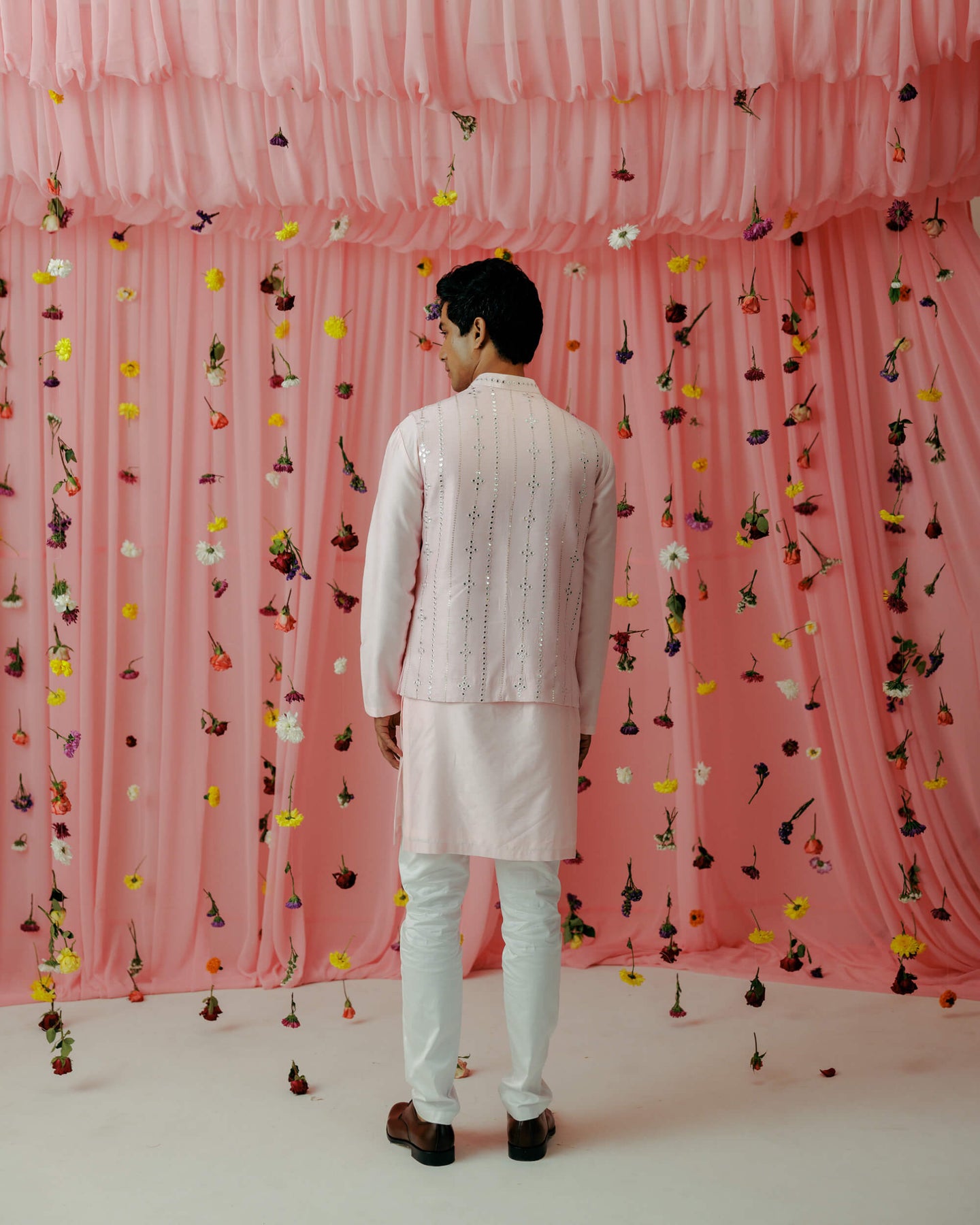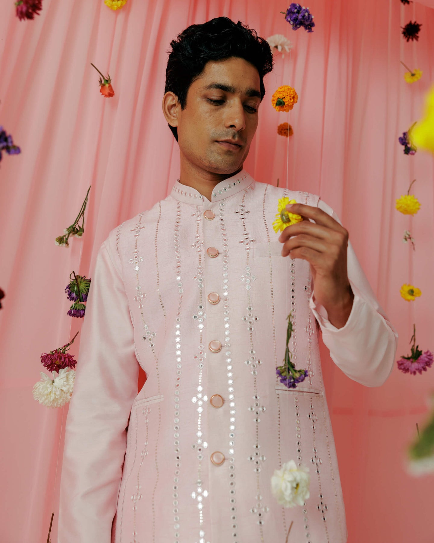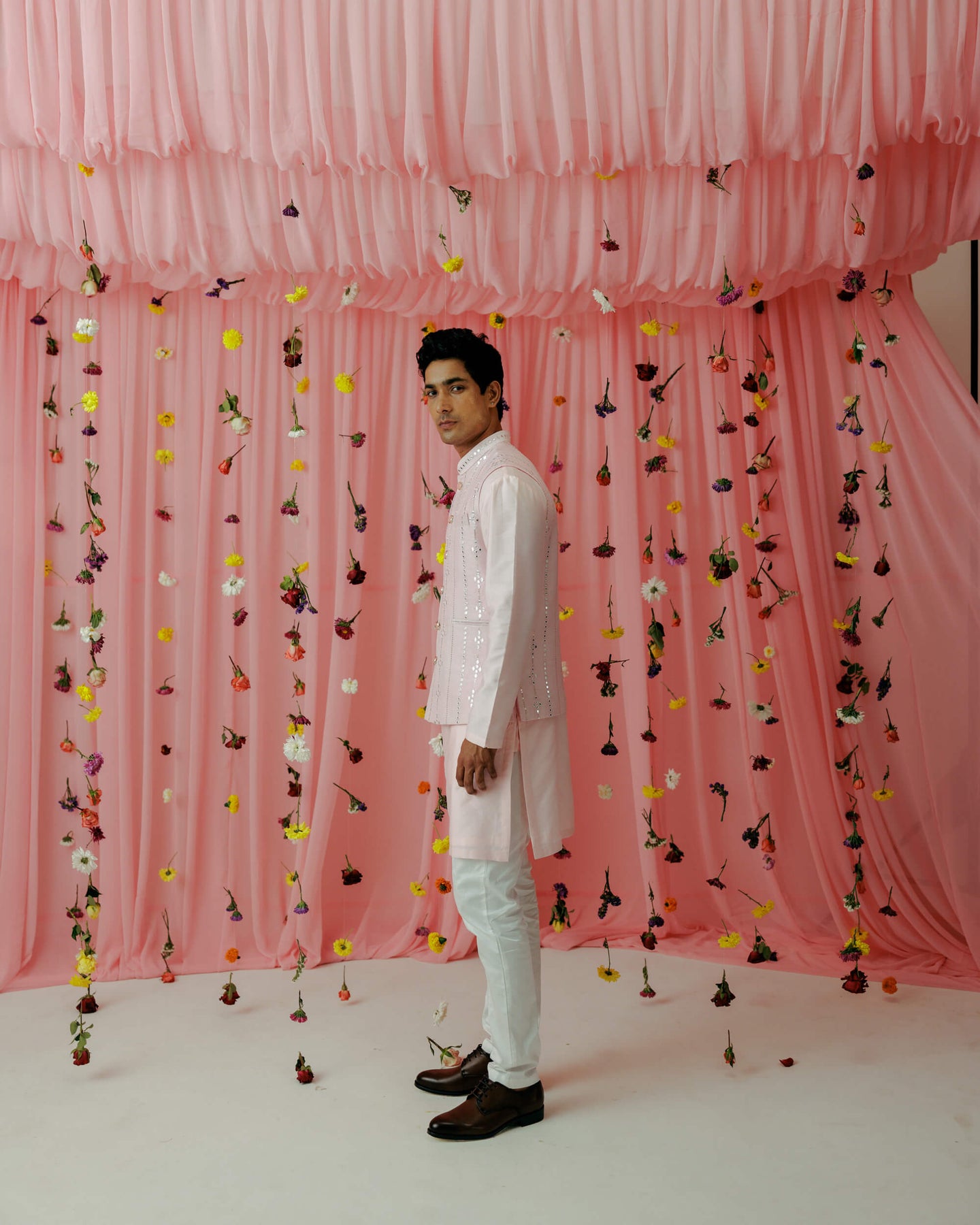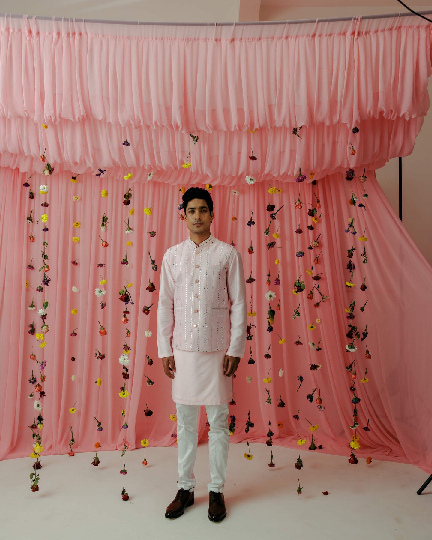 This romantic bandi set is perfect for that European summer wedding. Dress up or dress down the look with the mirror work vest.