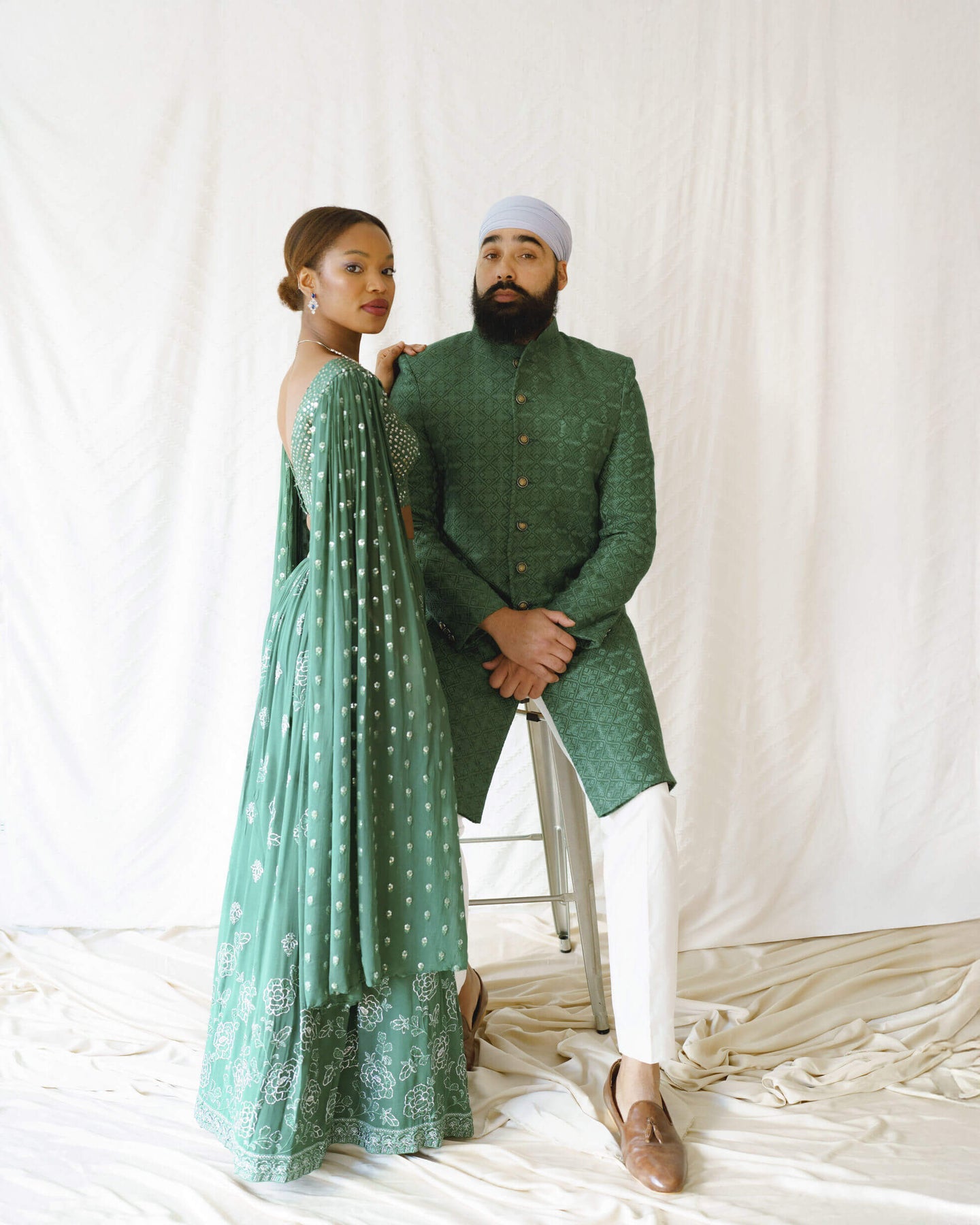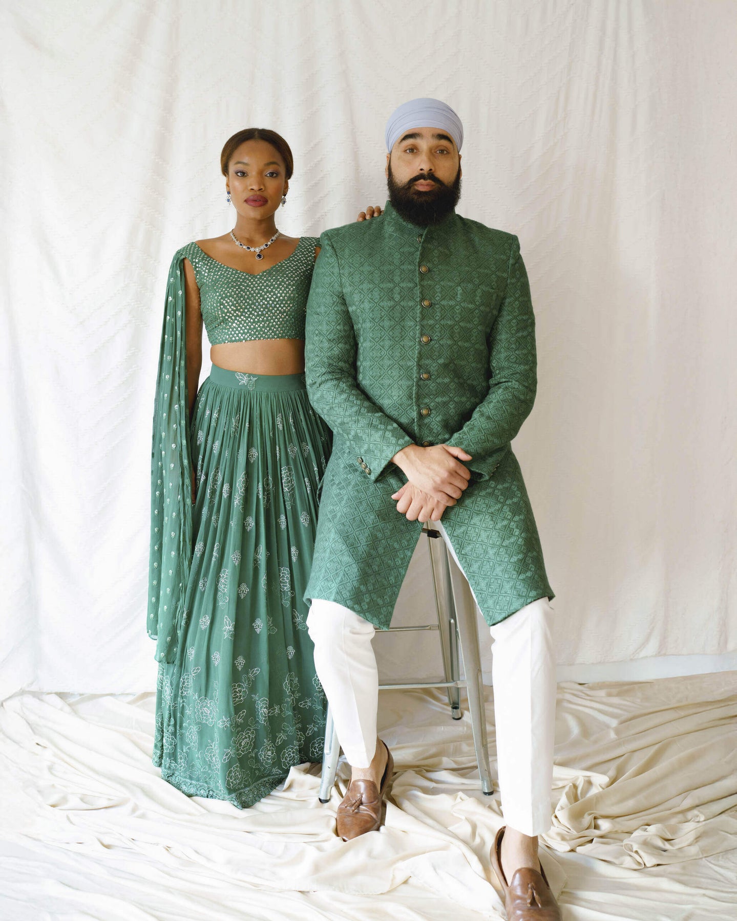 schedule a virtual appointment. To help you find the right fit, sherwanis and blouses include a two-inch margin for minor alterations, while pants have a half-inch margin. If you need