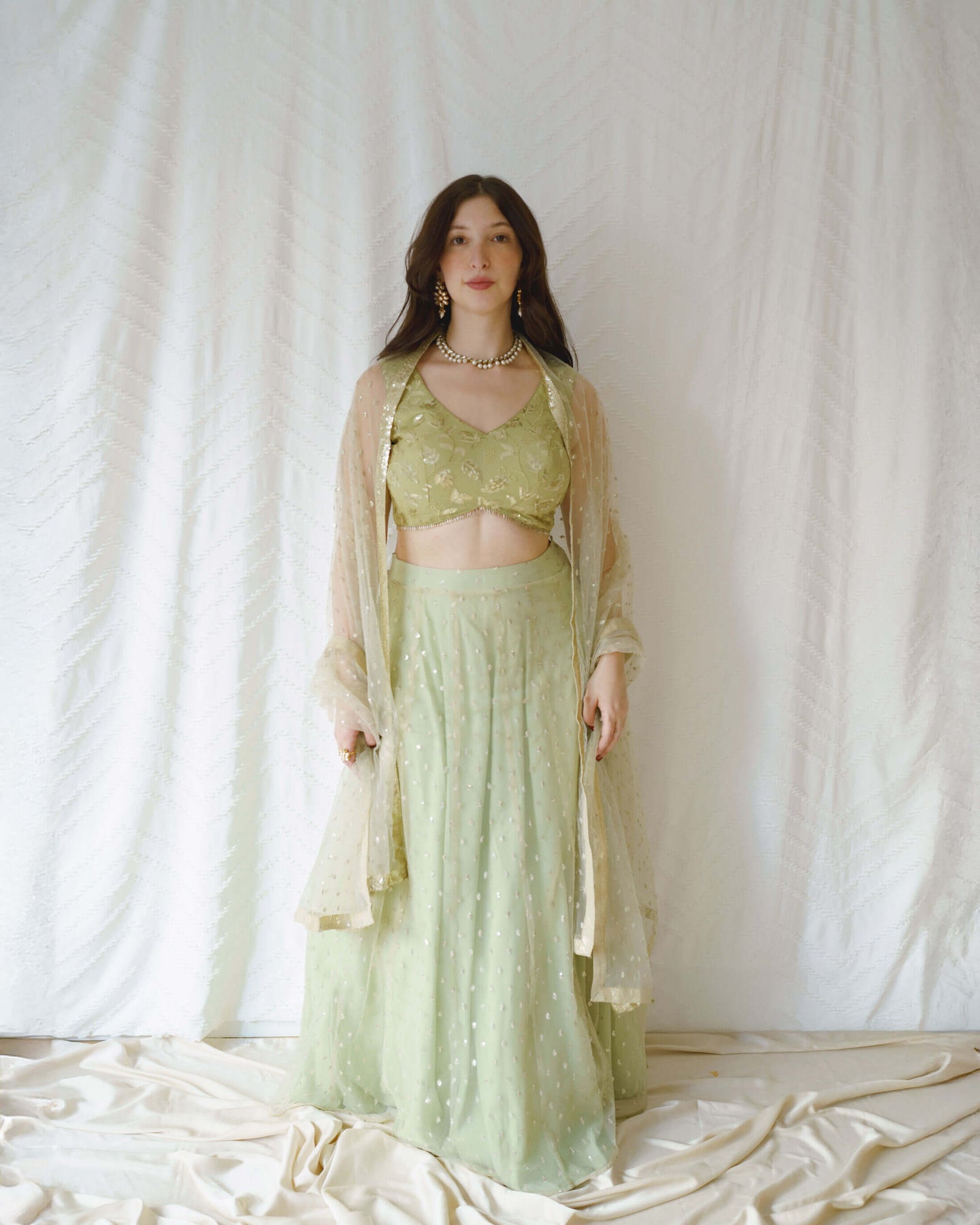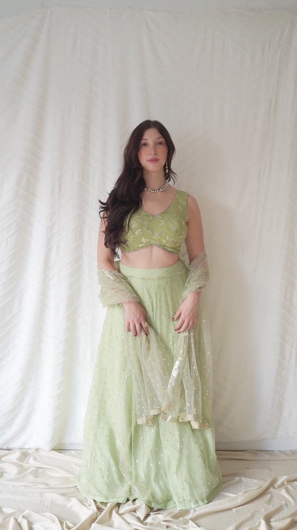 • Lehenga: Flowy net skirt, perfect for easy movement and elegance at any event.