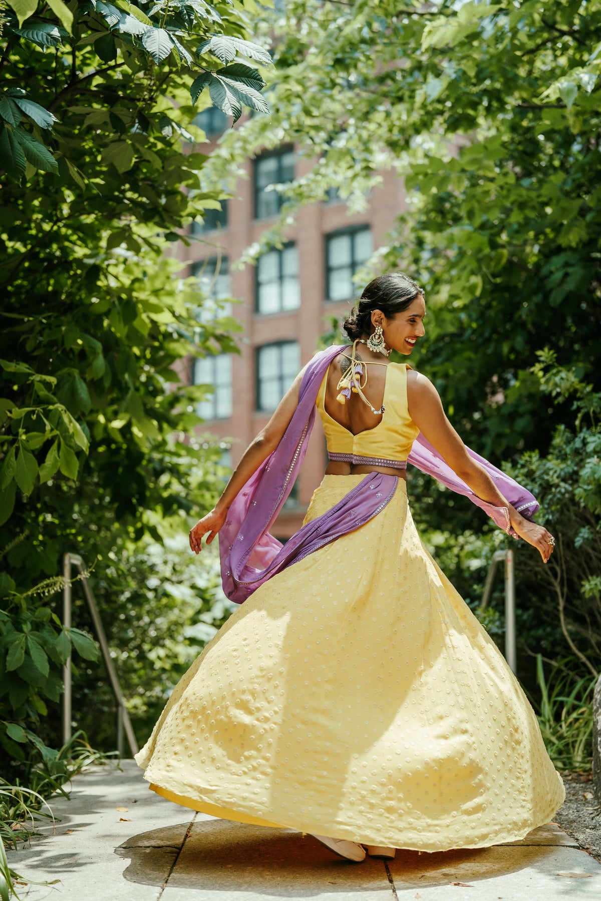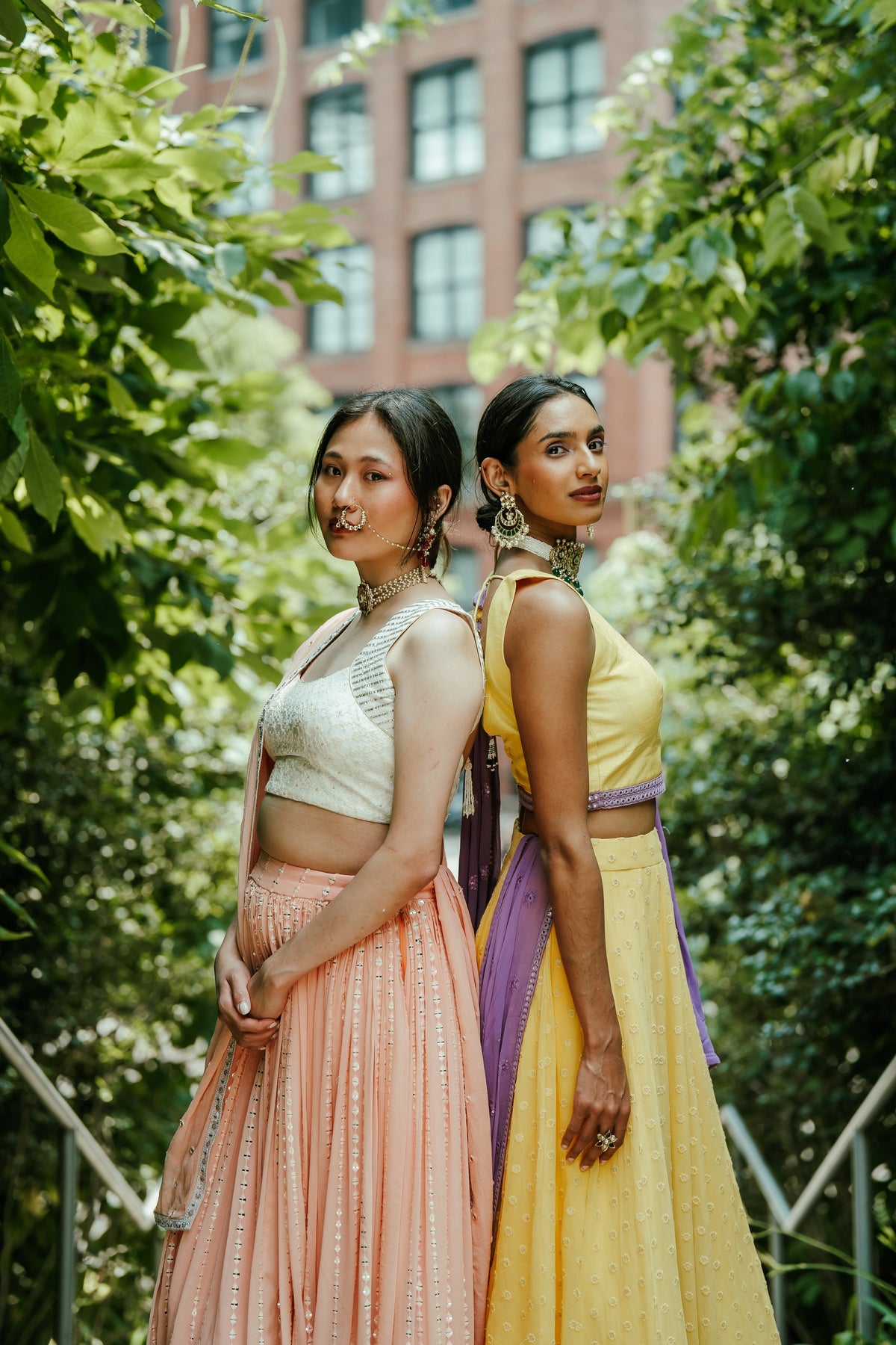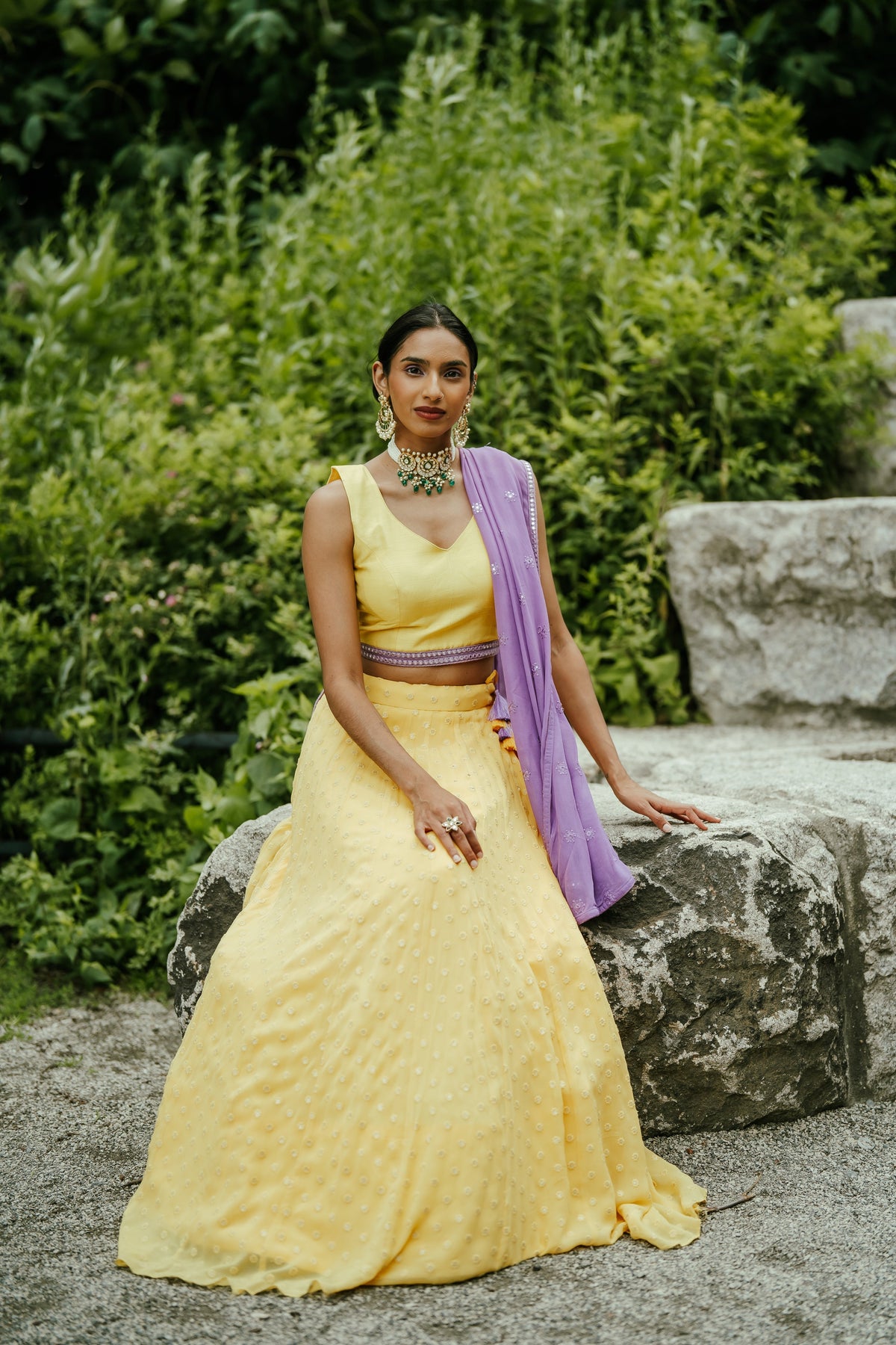 A clean and classic lehenga that can be easily customized per your liking! Have a different color combo in mind? Want to turn the blouse into a one shoulder top? SImply checkout and include your specification in the comment box.