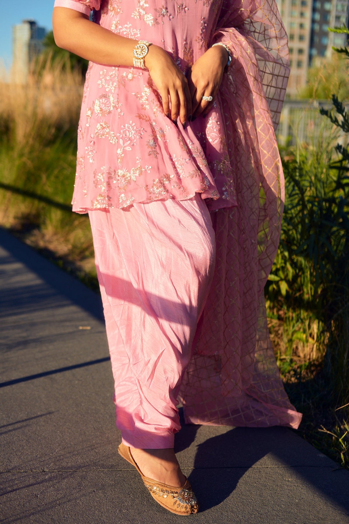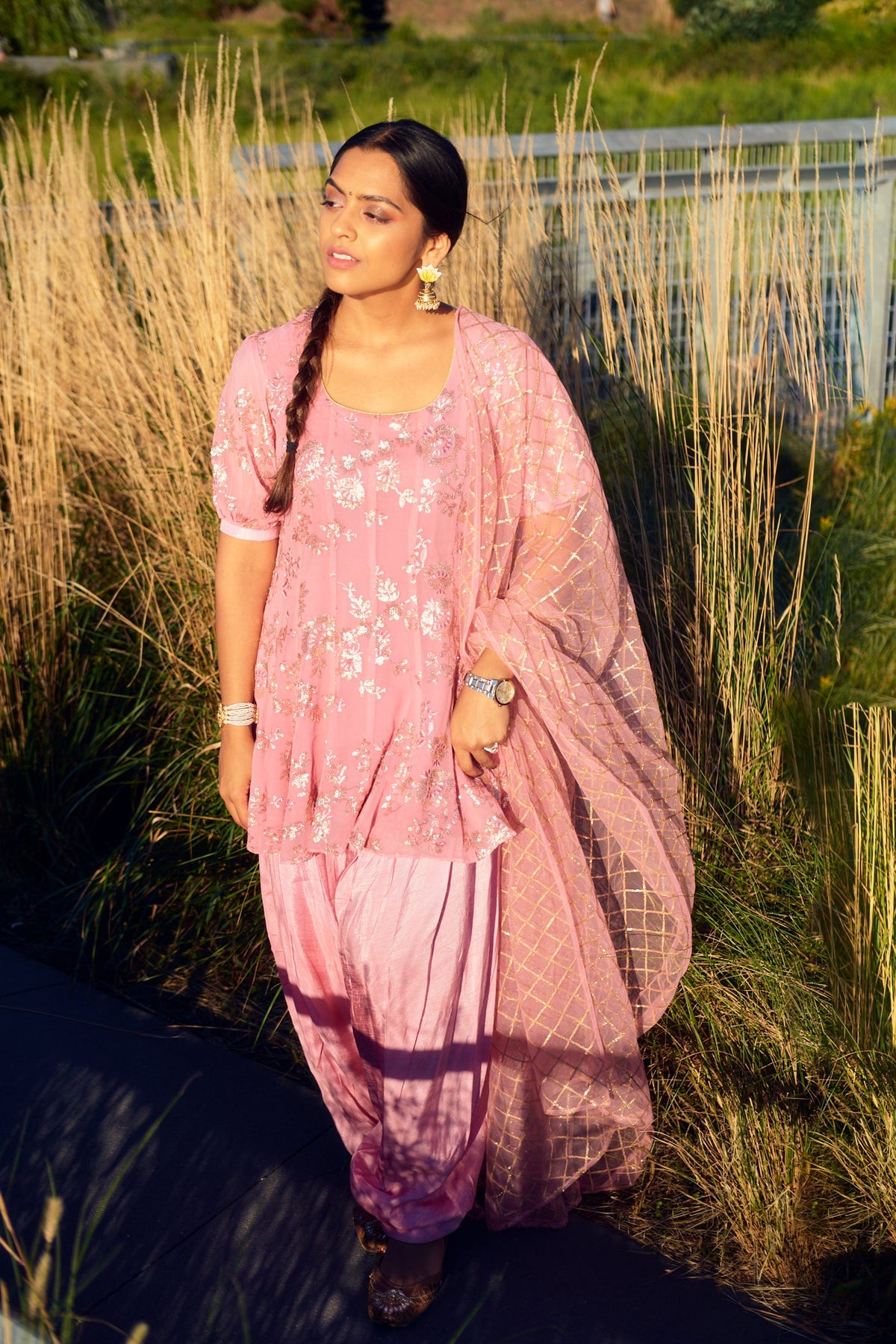 Pretty in pink is the vibe of this Anisha patiala suit. We love this fun and flirty look!