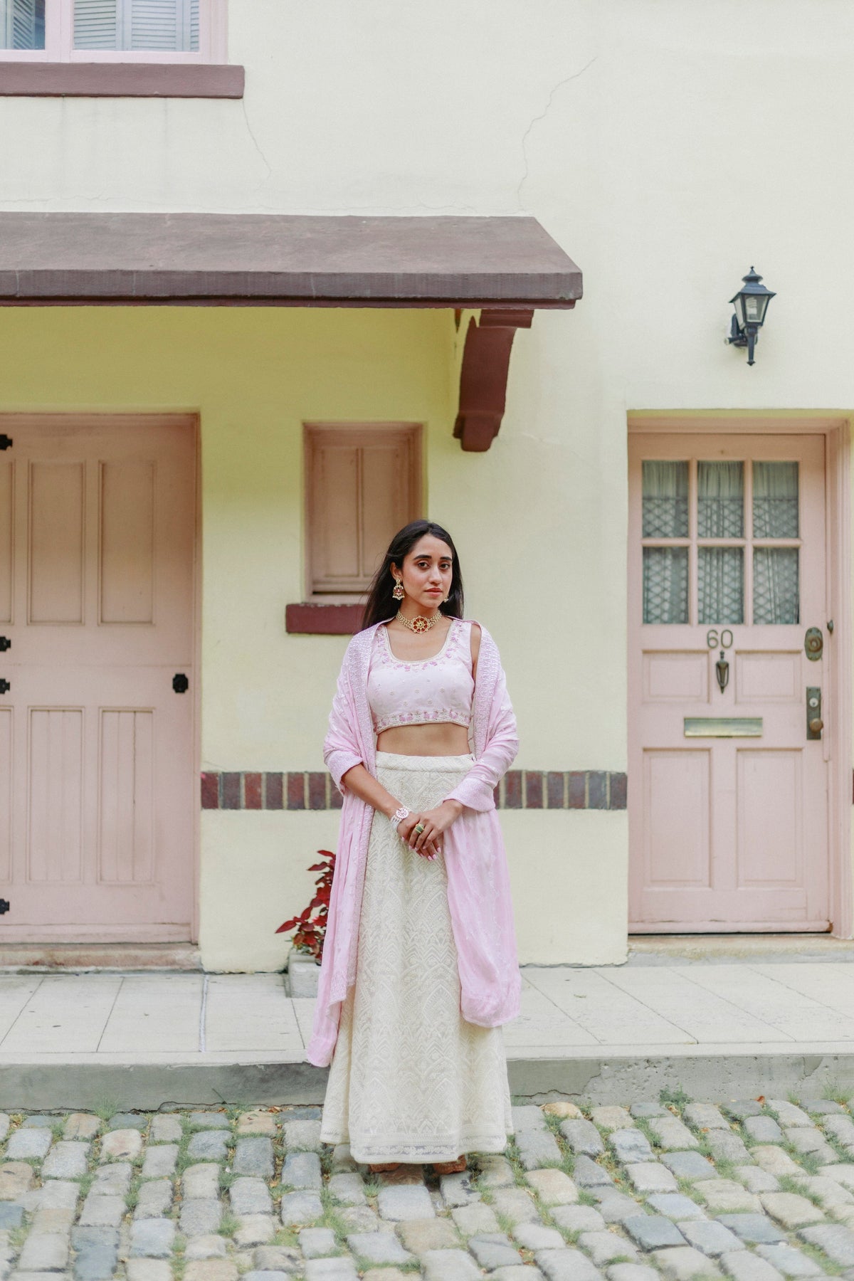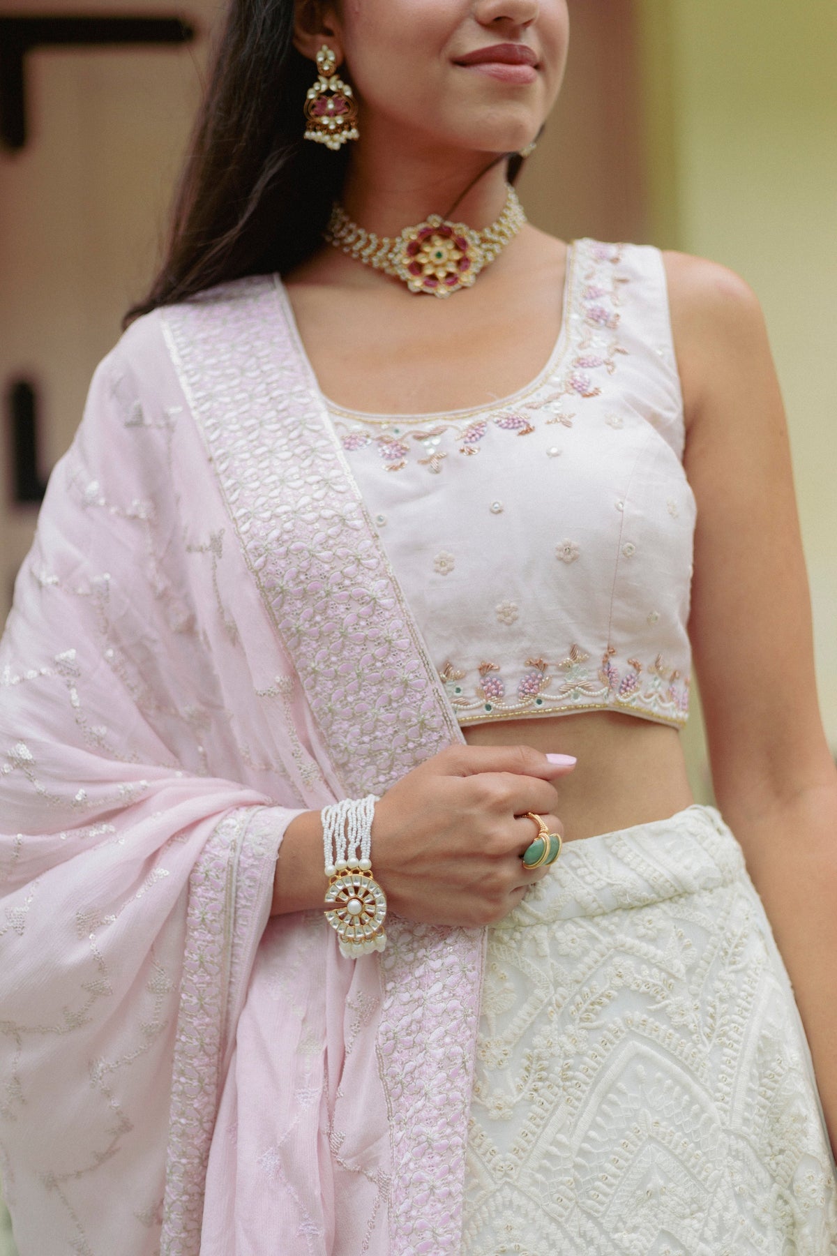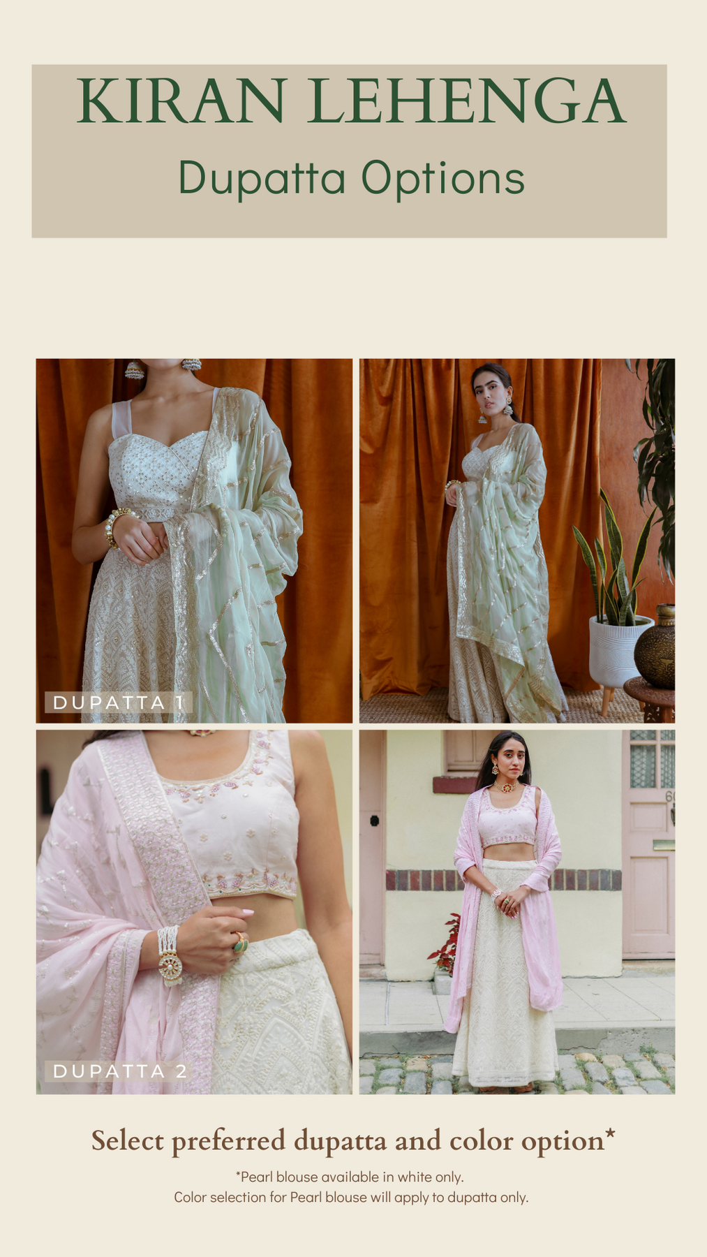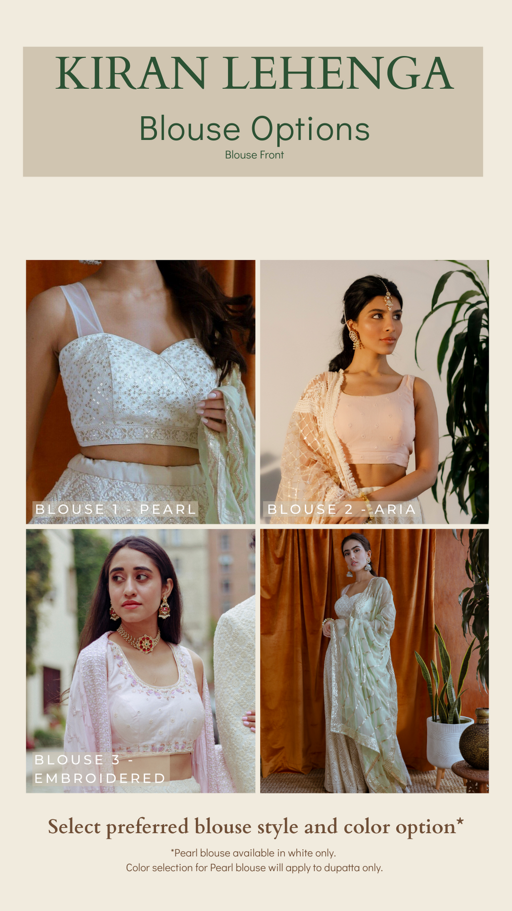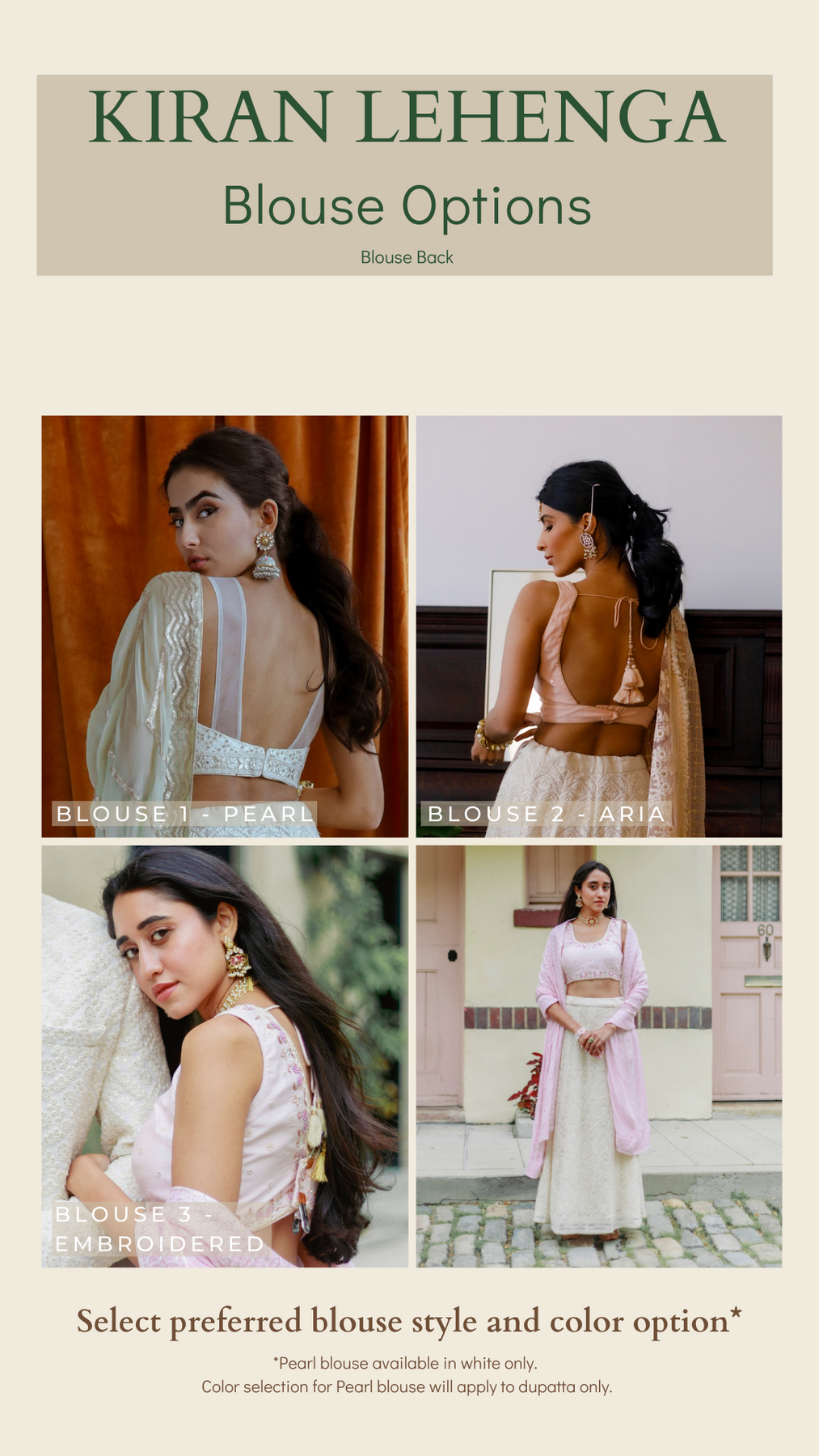 Pearl blouse available in white only. Color selection for Pearl blouse will apply to dupatta only.