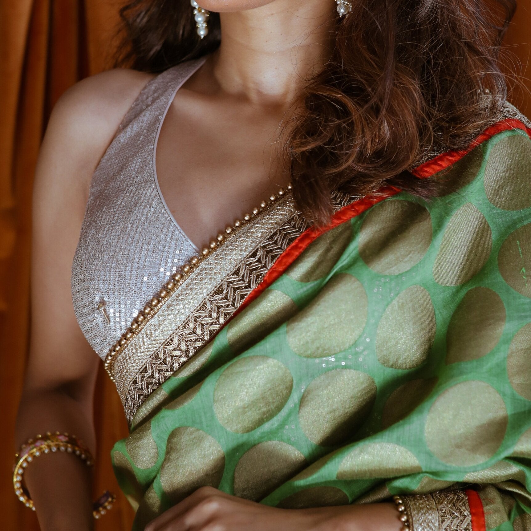 This eye-catching glimmering gold blouse is a must-have staple for any closet. Pair it with your favorite lehenga, sari, or even pair of fitted jeans for an easy and glamorous look! This blouse is made to measure, so please provide us with your accurate measurements to ensure a good fit.