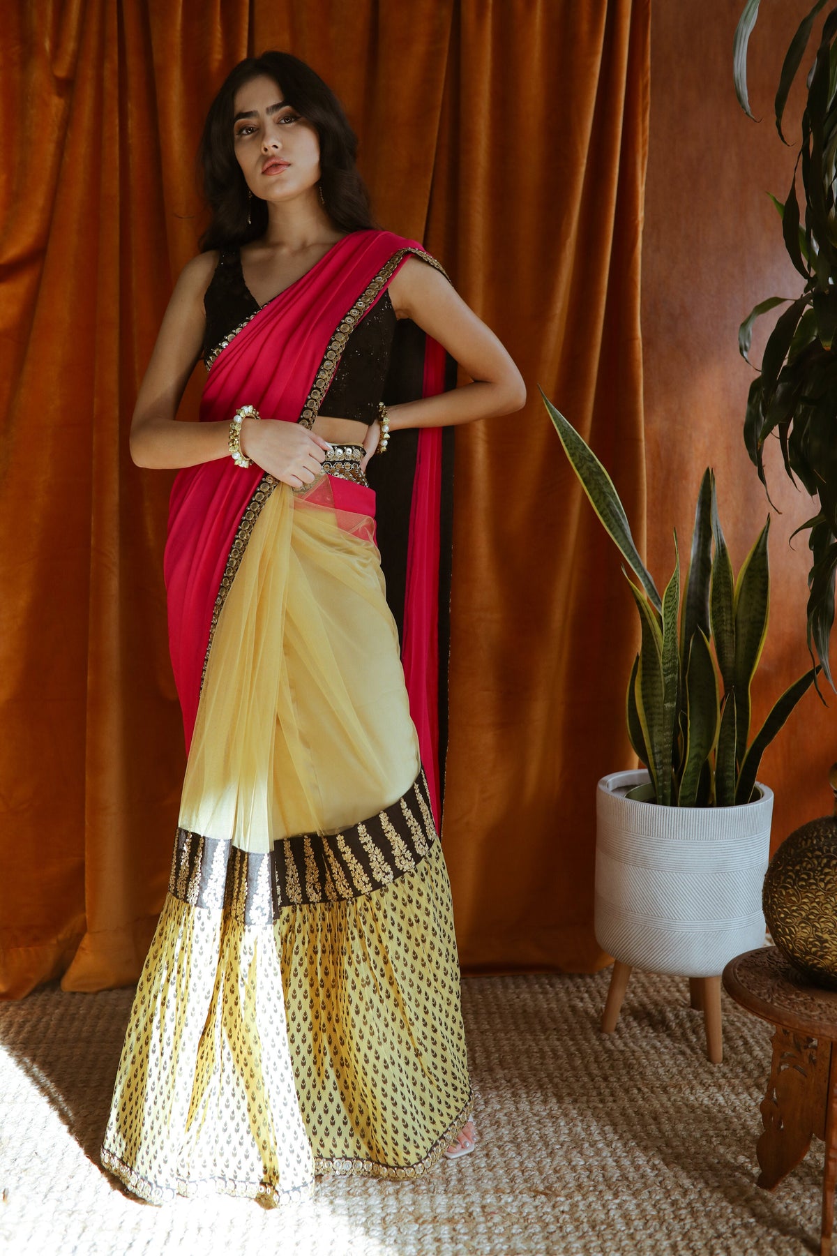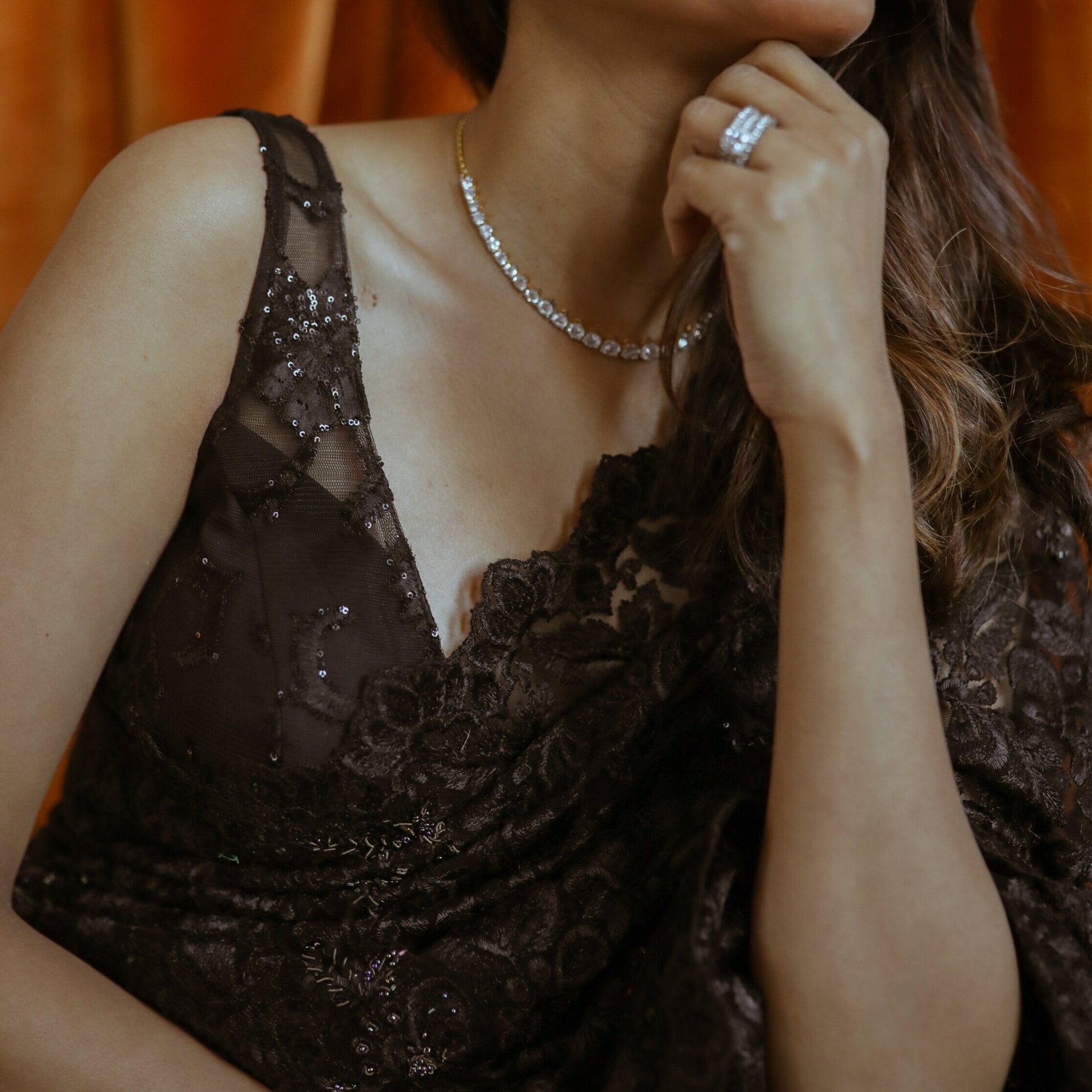 This classic black blouse is a must-have staple for any closet. Pair it with your favorite lehenga, sari, or even pair of fitted jeans for an easy and glamorous look!