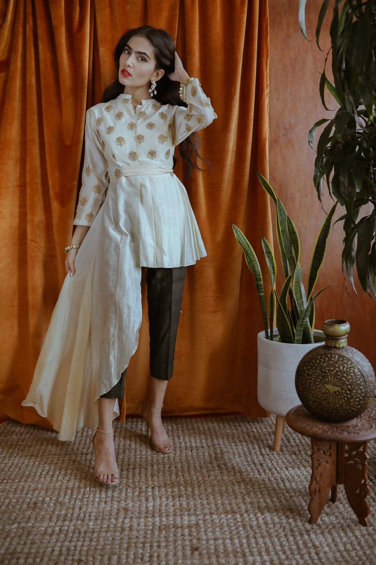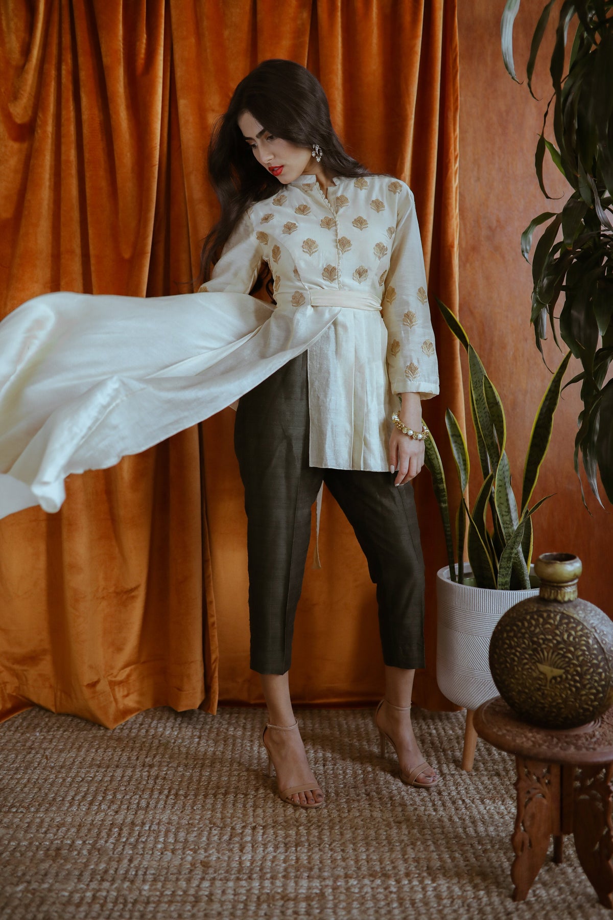 Sway with grace and glamour in this traditional yet edgy look. Introducing The Zaalima, a pant set coordinated outfit.