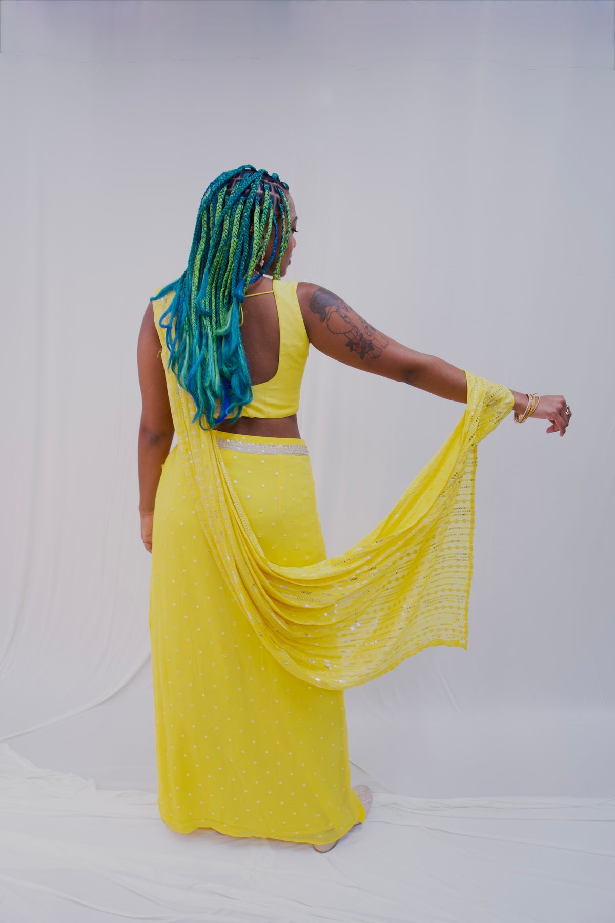 Manisha (Yellow) pre drape saree - Rental