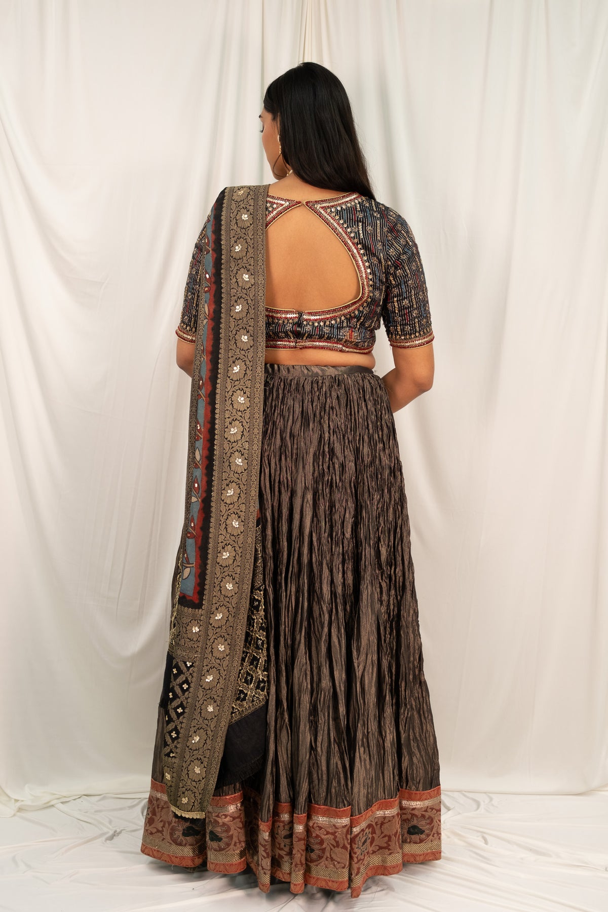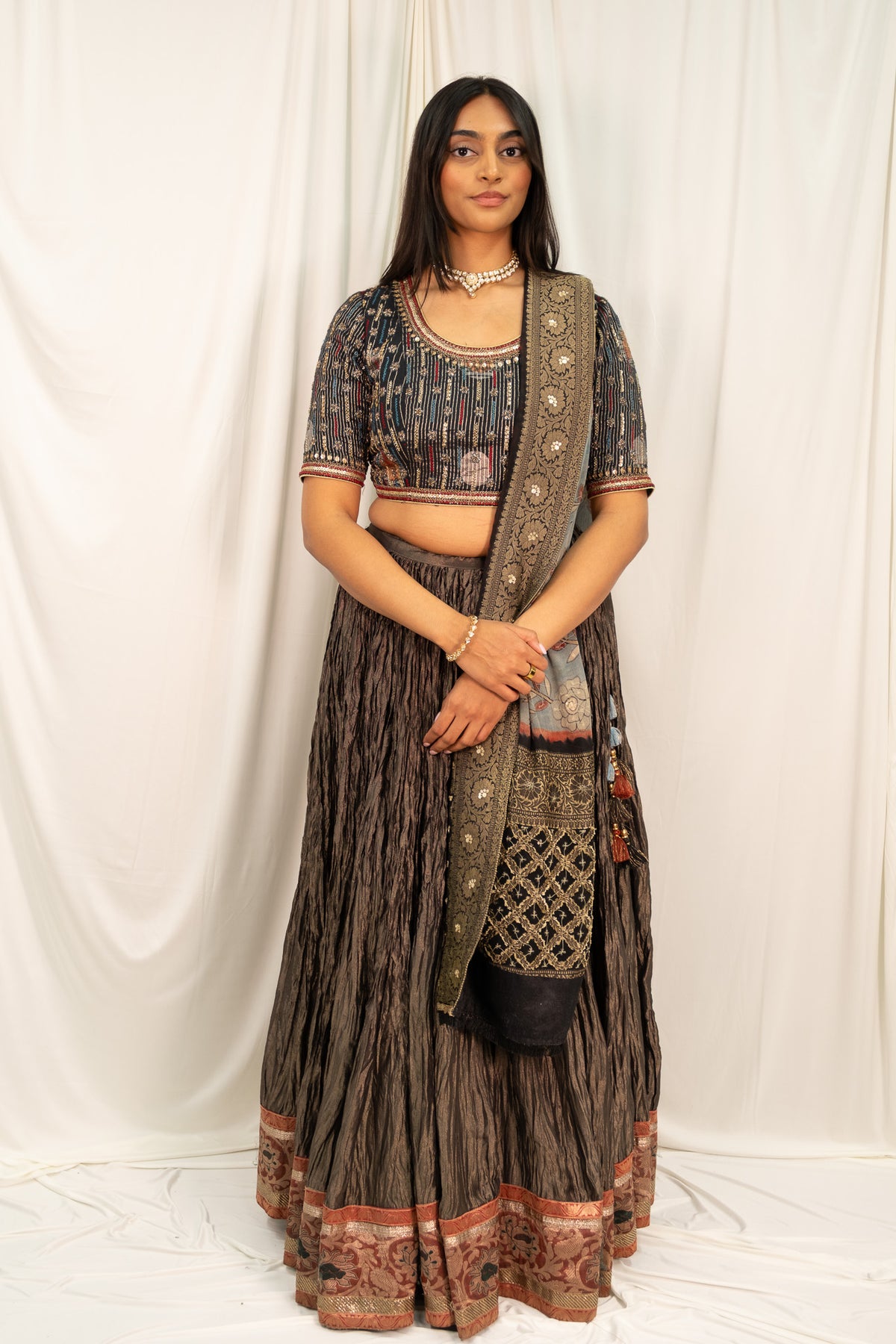 This romantic lehenga is perfect for that European summer wedding. The mirror work lehenga is a combination of traditional work but with a light modern flair.